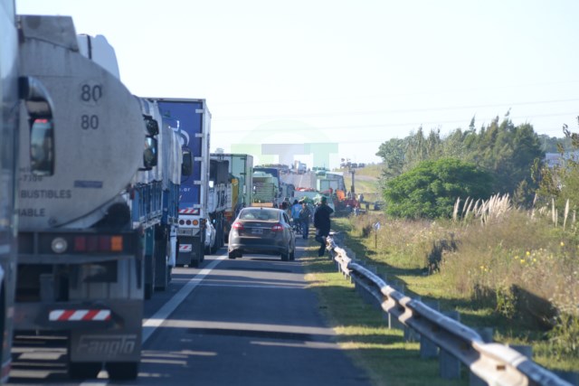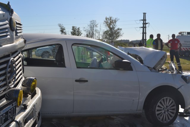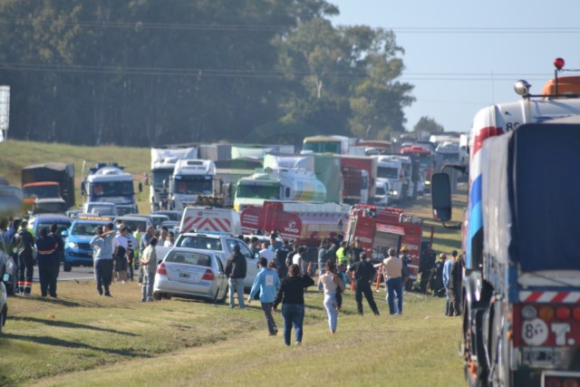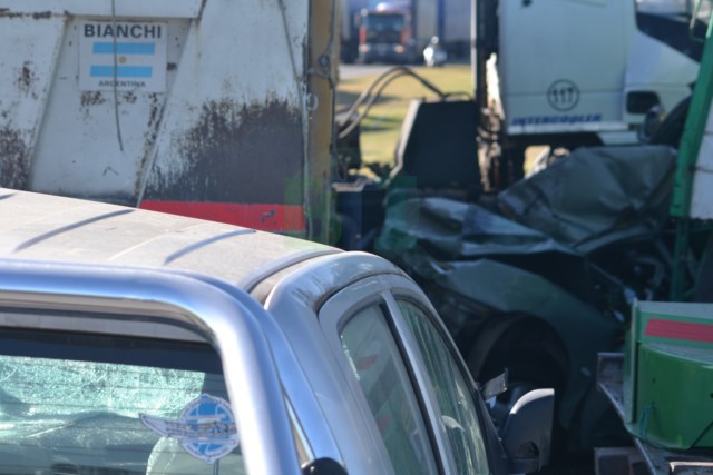 En el otro carril dos camiones de la misma empresa que salían de la estación de Servicios Petrobras, donde pasaron la noche con destino a Rosario, chocaron entre ellos e impactaron contra otro automóvil.